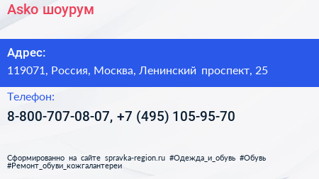 Asko, шоурум по адресу 119071, Россия, Москва, Ленинский проспект, 25 в дальнейшем Организация, размещена в следующих категориях: