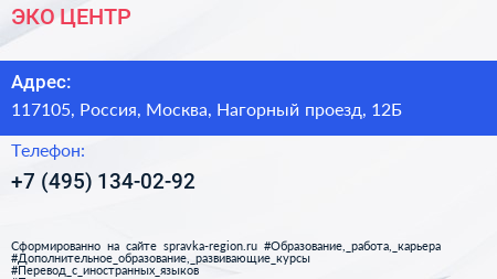 ЭКО-ЦЕНТР по адресу 117105, Россия, Москва, Нагорный проезд, 12Б в дальнейшем Организация, размещена в следующих категориях: