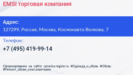 EMSI, торговая компания по адресу 127299, Россия, Москва, Космонавта Волкова, 7 в дальнейшем Организация, размещена в следующих категориях: