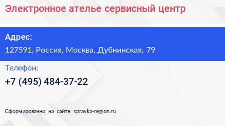 Электронное ателье, сервисный центр по адресу 127591, Россия, Москва, Дубнинская, 79 в дальнейшем Организация, размещена в следующих категориях: