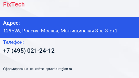 FixTech по адресу 129626, Россия, Москва, Мытищинская 3-я, 3 ст1 в дальнейшем Организация, размещена в следующих категориях: