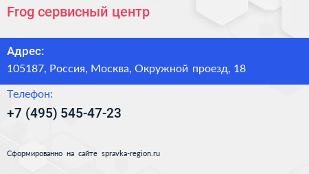 Frog, сервисный центр по адресу 105187, Россия, Москва, Окружной проезд, 18 в дальнейшем Организация, размещена в следующих категориях:
