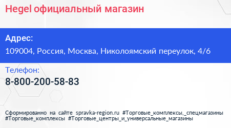 Hegel, официальный магазин по адресу 109004, Россия, Москва, Николоямский переулок, 4/6 в дальнейшем Организация, размещена в следующих категориях: