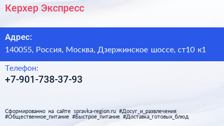Керхер Экспресс по адресу 140055, Россия, Москва, Дзержинское шоссе, ст10 к1 в дальнейшем Организация, размещена в следующих категориях: