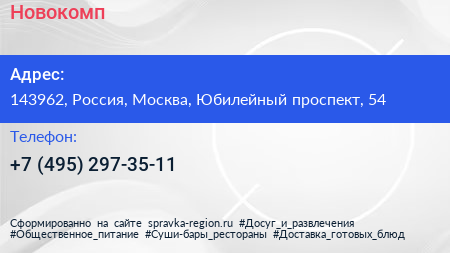 Новокомп по адресу 143962, Россия, Москва, Юбилейный проспект, 54 в дальнейшем Организация, размещена в следующих категориях: