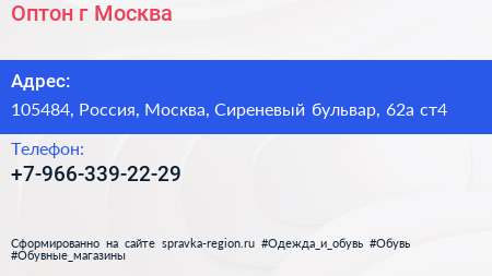 Оптон, г. Москва по адресу 105484, Россия, Москва, Сиреневый бульвар, 62а ст4 в дальнейшем Организация, размещена в следующих категориях: