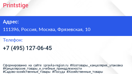 Printstige по адресу 111396, Россия, Москва, Фрязевская, 10 в дальнейшем Организация, размещена в следующих категориях:
