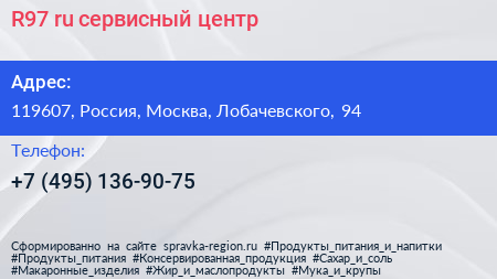 R97.ru, сервисный центр по адресу 119607, Россия, Москва, Лобачевского, 94 в дальнейшем Организация, размещена в следующих категориях: