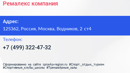 Ремалекс, компания по адресу 125362, Россия, Москва, Водников, 2 ст4 в дальнейшем Организация, размещена в следующих категориях: