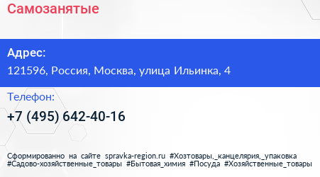 Самозанятые по адресу 121596, Россия, Москва, улица Ильинка, 4 в дальнейшем Организация, размещена в следующих категориях: