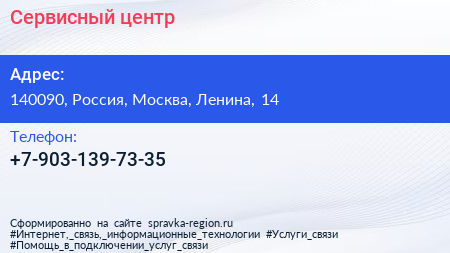 Сервисный центр по адресу 140090, Россия, Москва, Ленина, 14 в дальнейшем Организация, размещена в следующих категориях: