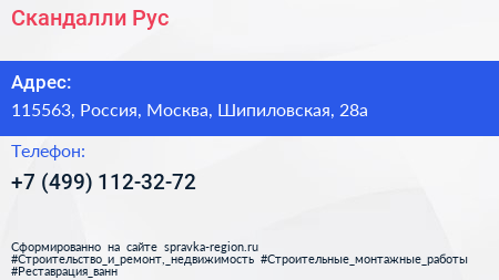 Скандалли Рус по адресу 115563, Россия, Москва, Шипиловская, 28а в дальнейшем Организация, размещена в следующих категориях: