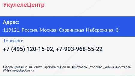 УкулелеЦентр по адресу 119121, Россия, Москва, Саввинская Набережная, 3 в дальнейшем Организация, размещена в следующих категориях: