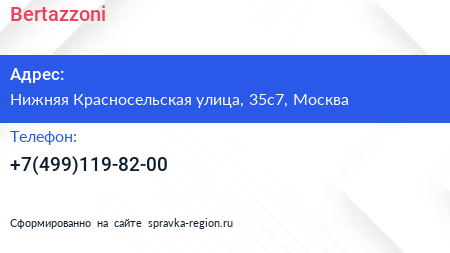 Bertazzoni по адресу Нижняя Красносельская улица, 35с7, Москва в дальнейшем Организация, размещена в следующих категориях: