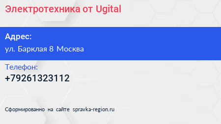 Электротехника от Ugital по адресу ул. Барклая 8 Москва в дальнейшем Организация, размещена в следующих категориях: