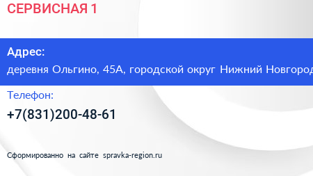 СЕРВИСНАЯ 1 по адресу деревня Ольгино, 45А, городской округ Нижний Новгород в дальнейшем Организация, размещена в следующих категориях: