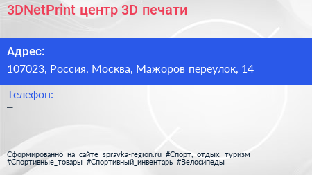 3DNetPrint, центр 3D-печати по адресу 107023, Россия, Москва, Мажоров переулок, 14 в дальнейшем Организация, размещена в следующих категориях: