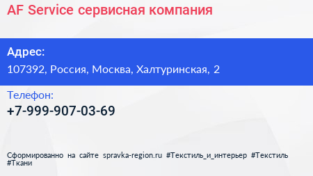 AF-Service, сервисная компания по адресу 107392, Россия, Москва, Халтуринская, 2 в дальнейшем Организация, размещена в следующих категориях: