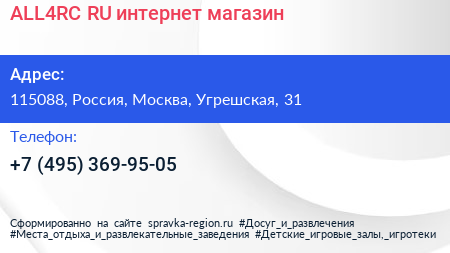 ALL4RC.RU, интернет-магазин по адресу 115088, Россия, Москва, Угрешская, 31 в дальнейшем Организация, размещена в следующих категориях: