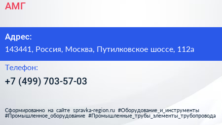 АМГ по адресу 143441, Россия, Москва, Путилковское шоссе, 112а в дальнейшем Организация, размещена в следующих категориях:
