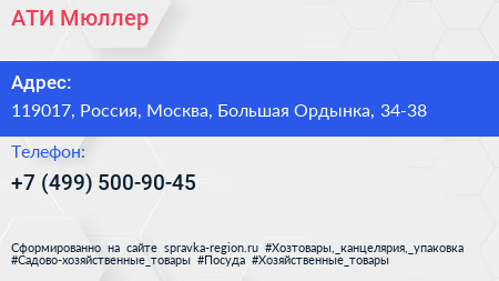 АТИ Мюллер по адресу 119017, Россия, Москва, Большая Ордынка, 34-38 в дальнейшем Организация, размещена в следующих категориях: