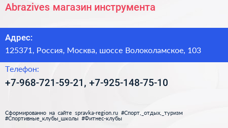 Abrazives, магазин инструмента по адресу 125371, Россия, Москва, шоссе Волоколамское, 103 в дальнейшем Организация, размещена в следующих категориях: