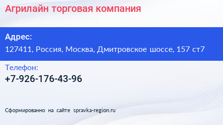 Агрилайн, торговая компания по адресу 127411, Россия, Москва, Дмитровское шоссе, 157 ст7 в дальнейшем Организация, размещена в следующих категориях: