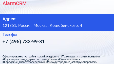 AlarmCRM по адресу 121351, Россия, Москва, Коцюбинского, 4 в дальнейшем Организация, размещена в следующих категориях:
