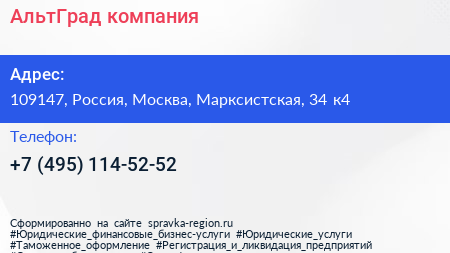АльтГрад, компания по адресу 109147, Россия, Москва, Марксистская, 34 к4 в дальнейшем Организация, размещена в следующих категориях: