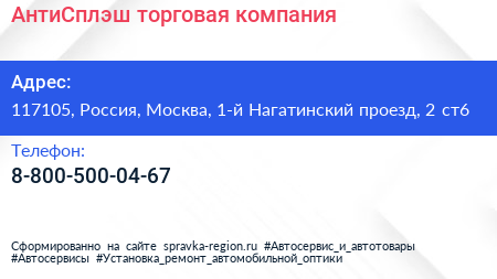 АнтиСплэш, торговая компания по адресу 117105, Россия, Москва, 1-й Нагатинский проезд, 2 ст6 в дальнейшем Организация, размещена в следующих категориях: