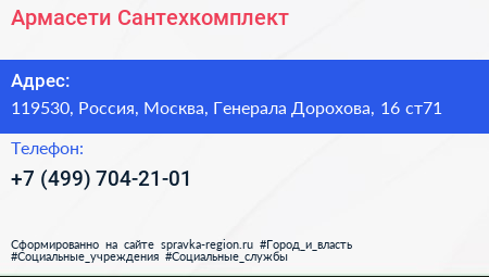 Армасети-Сантехкомплект по адресу 119530, Россия, Москва, Генерала Дорохова, 16 ст71 в дальнейшем Организация, размещена в следующих категориях: