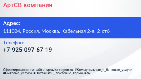 АртСВ, компания по адресу 111024, Россия, Москва, Кабельная 2-я, 2 ст6 в дальнейшем Организация, размещена в следующих категориях: