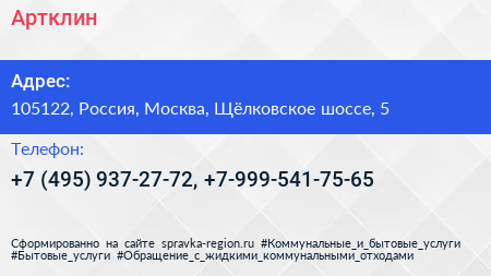 Артклин по адресу 105122, Россия, Москва, Щёлковское шоссе, 5 в дальнейшем Организация, размещена в следующих категориях: