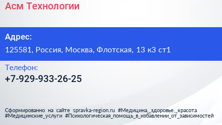 Асм-Технологии по адресу 125581, Россия, Москва, Флотская, 13 к3 ст1 в дальнейшем Организация, размещена в следующих категориях: