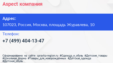 Aspect, компания по адресу 107023, Россия, Москва, площадь Журавлева, 10 в дальнейшем Организация, размещена в следующих категориях: