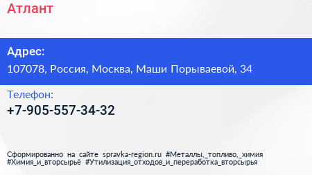 Атлант по адресу 107078, Россия, Москва, Маши Порываевой, 34 в дальнейшем Организация, размещена в следующих категориях: