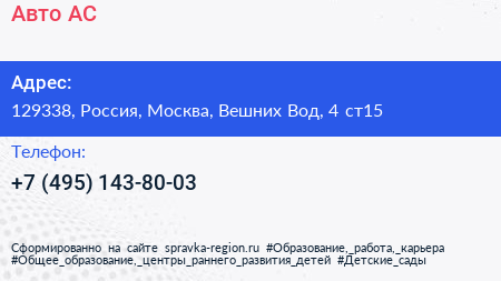 Авто-AC по адресу 129338, Россия, Москва, Вешних Вод, 4 ст15 в дальнейшем Организация, размещена в следующих категориях: