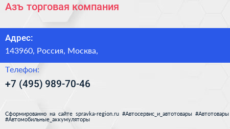 Азъ, торговая компания по адресу 143960, Россия, Москва, в дальнейшем Организация, размещена в следующих категориях:
