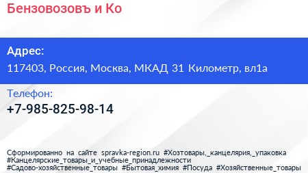 Бензовозовъ и Ко по адресу 117403, Россия, Москва, МКАД 31 Километр, вл1а в дальнейшем Организация, размещена в следующих категориях:
