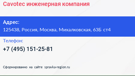 Cavotec, инженерная компания по адресу 125438, Россия, Москва, Михалковская, 63Б ст4 в дальнейшем Организация, размещена в следующих категориях: