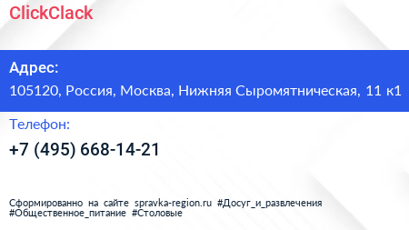 ClickClack по адресу 105120, Россия, Москва, Нижняя Сыромятническая, 11 к1 в дальнейшем Организация, размещена в следующих категориях: