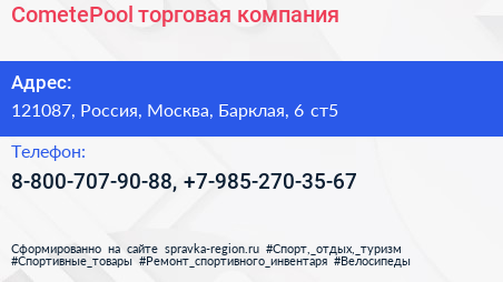 CometePool, торговая компания по адресу 121087, Россия, Москва, Барклая, 6 ст5 в дальнейшем Организация, размещена в следующих категориях: