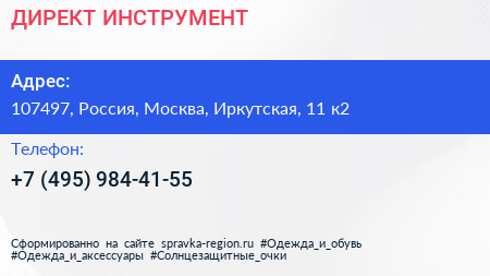 ДИРЕКТ ИНСТРУМЕНТ по адресу 107497, Россия, Москва, Иркутская, 11 к2 в дальнейшем Организация, размещена в следующих категориях: