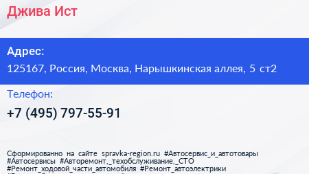Джива Ист по адресу 125167, Россия, Москва, Нарышкинская аллея, 5 ст2 в дальнейшем Организация, размещена в следующих категориях:
