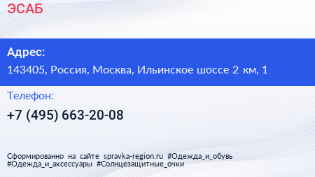 ЭСАБ по адресу 143405, Россия, Москва, Ильинское шоссе 2 км, 1 в дальнейшем Организация, размещена в следующих категориях: