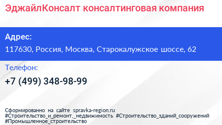 ЭджайлКонсалт, консалтинговая компания по адресу 117630, Россия, Москва, Старокалужское шоссе, 62 в дальнейшем Организация, размещена в следующих категориях:
