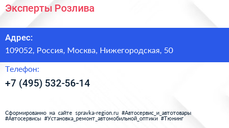 Эксперты Розлива по адресу 109052, Россия, Москва, Нижегородская, 50 в дальнейшем Организация, размещена в следующих категориях: