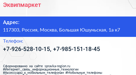 Эквипмаркет по адресу 117303, Россия, Москва, Большая Юшуньская, 1а к7 в дальнейшем Организация, размещена в следующих категориях: