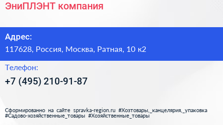 ЭниПЛЭНТ, компания по адресу 117628, Россия, Москва, Ратная, 10 к2 в дальнейшем Организация, размещена в следующих категориях: