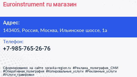 Euroinstrument.ru, магазин по адресу 143405, Россия, Москва, Ильинское шоссе, 1а в дальнейшем Организация, размещена в следующих категориях: